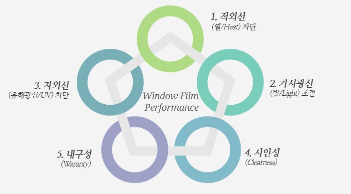 윈도우필름의 엄격한 성능기준인 5가지 원칙을 엄수하였으며,