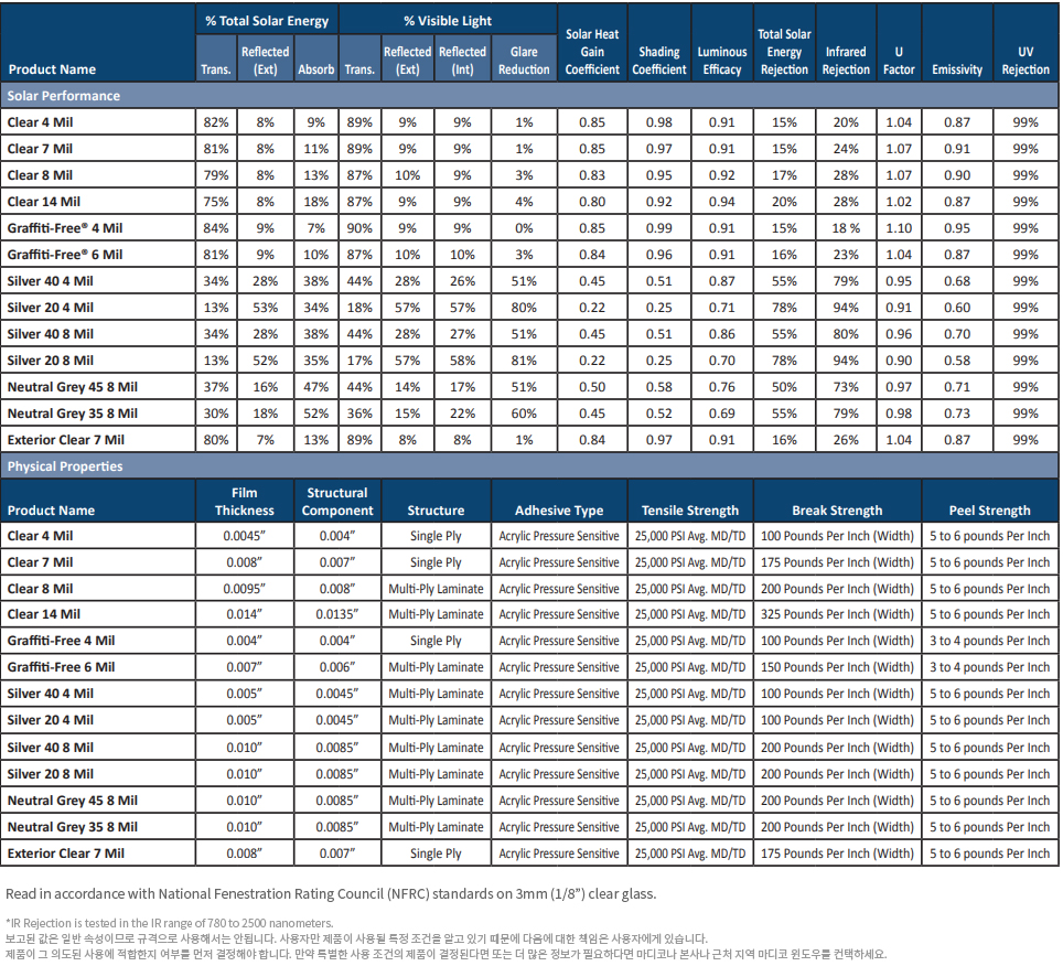 Safety & Security Film Performance Specifications ㅣ안전 및 보안 필름 성능 규격